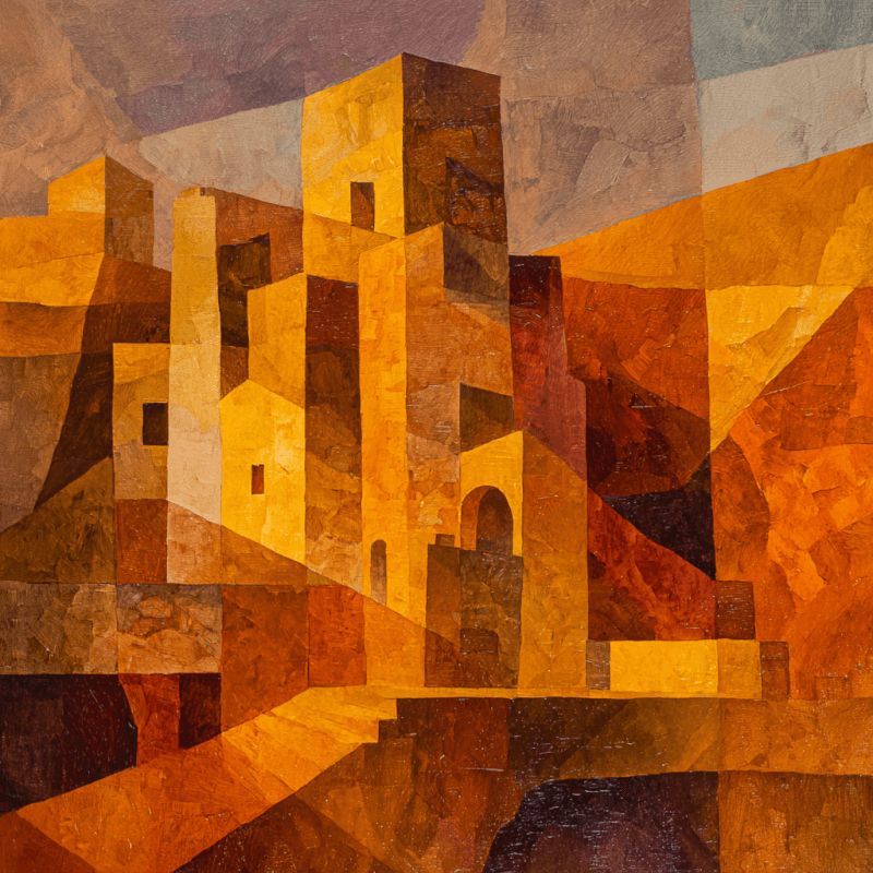 Ancient Terrain: Minimalist Cubist Landscape – Braque’s Kitchen Harmony